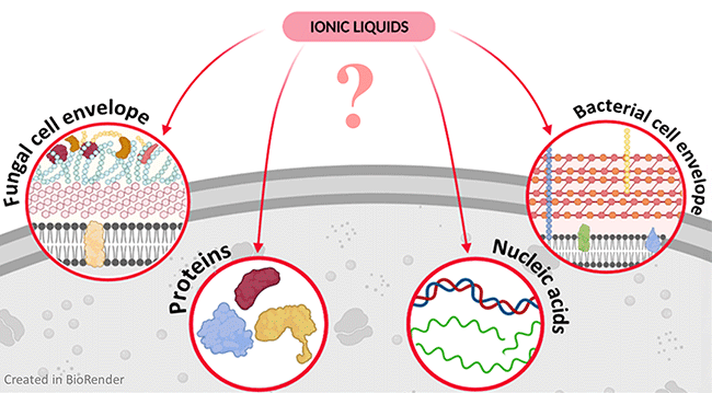 RACEDELYS: Untersuchung der Interaktion von ionischen Flüssigkeiten mit Zellhüllen, Proteinen und Nukleinsäuren von Pilz- und Bakterienzellen